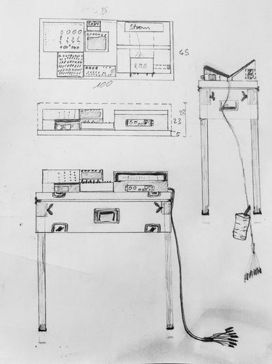 The idea was to develop a system that a complete liveset by Frank Wiedemann for his project HOWLING, is integrated in a table. The setup to a standing table should be simple and pre-wired, ready to play.